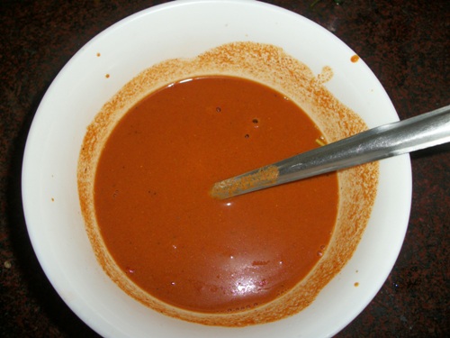 | Dissolve some tamarind in water..I used tamarind paste... |