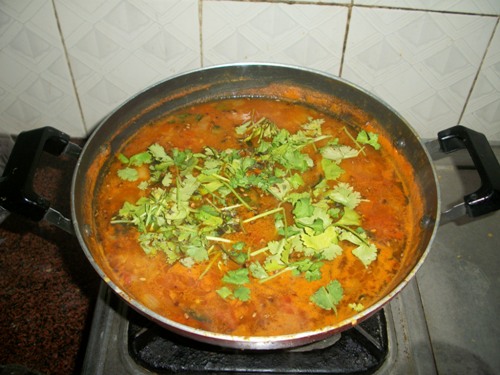 | add in tons of cilantro...This give a nice aroma to the sambar...Don't do sambar without cilantro... |