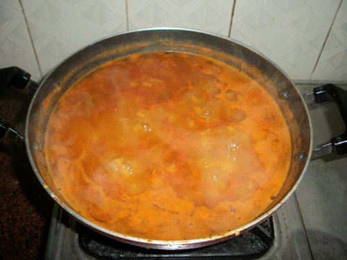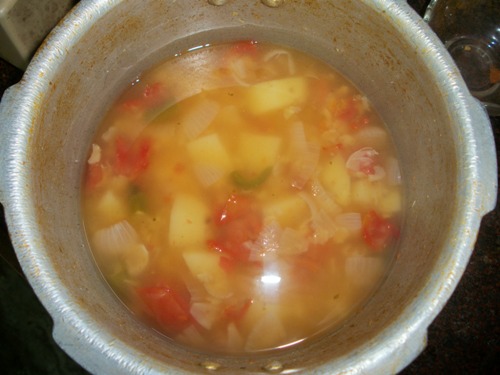 | Cook it till done..I mean the dal should be very soft and potatoes should be cooked |